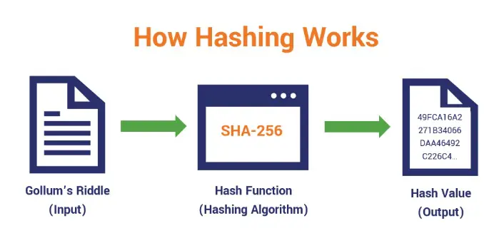 Жишээ: Та “сайн уу” гэх үгийг хэш алгоритмаар боловсруулбал “a3f5g9h2” гэх тэмдэгт мөр гарна. Энэ нь: